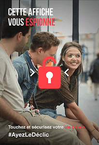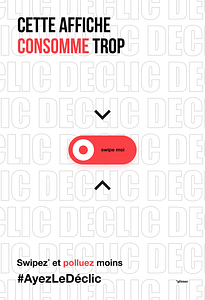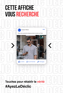 Nous avons réalisé une campagne Dooh constitué de 3 affiches traitant de l’environnement, la sécurité et la désinformation. Ses affiches sont interactives et poussent le passant à agir avec un hashtag fort : #AyezLeDéclic